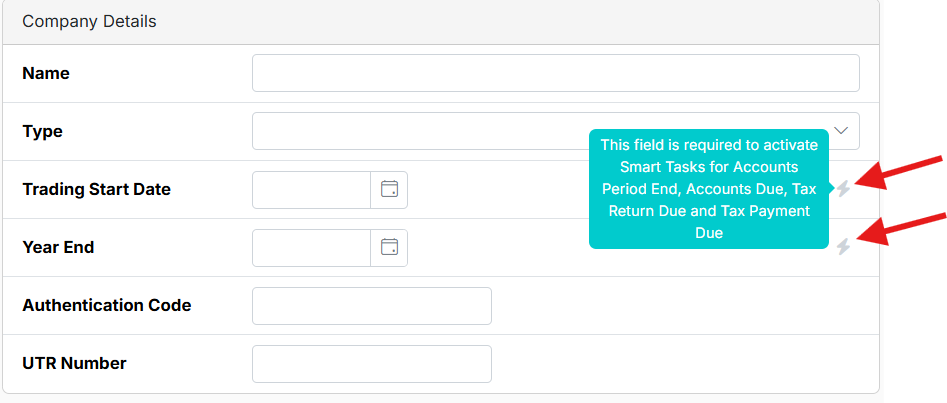 Be sure to complete key service-related fields such as VAT frequency, year-end, and payroll cycle. This will automatically generate smart tasks and help reduce manual setup. For clients with a company number, Companies House data such as year-end dates will auto-update.