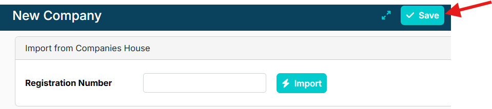 - Once all the information is entered click Save at the top of the New Company pop-up box