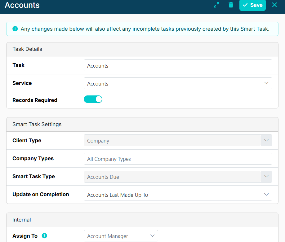 To review smart task templates while on the Tasks tab, click on the Smart Tasks button.