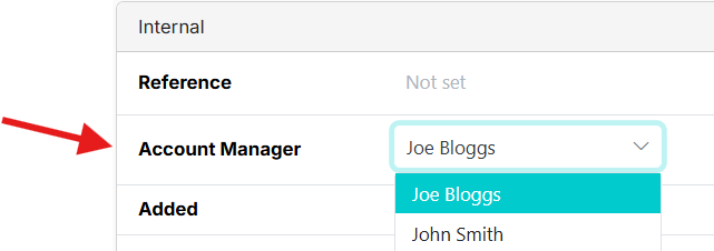 You can separately assign users directly to clients in the Companies or Individuals sections, by clicking on the client name, and updating the internal assignment panel - Account Manager field