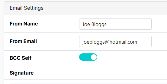Email templates are created centrally via Settings \ Email Templates using a combination of text and system field data. You can customise the ”from” name, email and signature block (including your logo in Settings \ Account Settings.